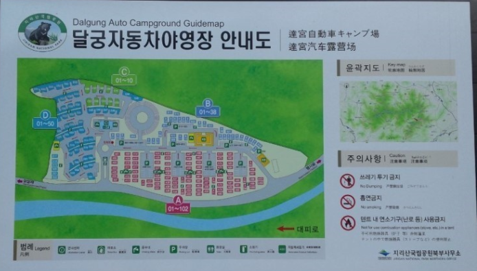 월악산에는 송계, 닷돈재, 덕주, 용하야영장 이렇게 네 곳의 국립공원관리공단에서 운영하는 야영장이 있는데, 용하자동차야영장은 총 101개 사이트가 있는 비교적 작은 규모의 캠핑장입니다.