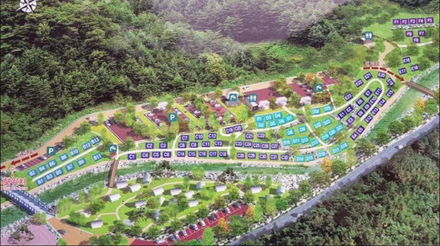 그리고 C는 9개 사이트가 있는 자차 카라반 사이트이고, D구역은 12개 사이트가 있고 카라반이 준비되어 있는 사이트입니다.