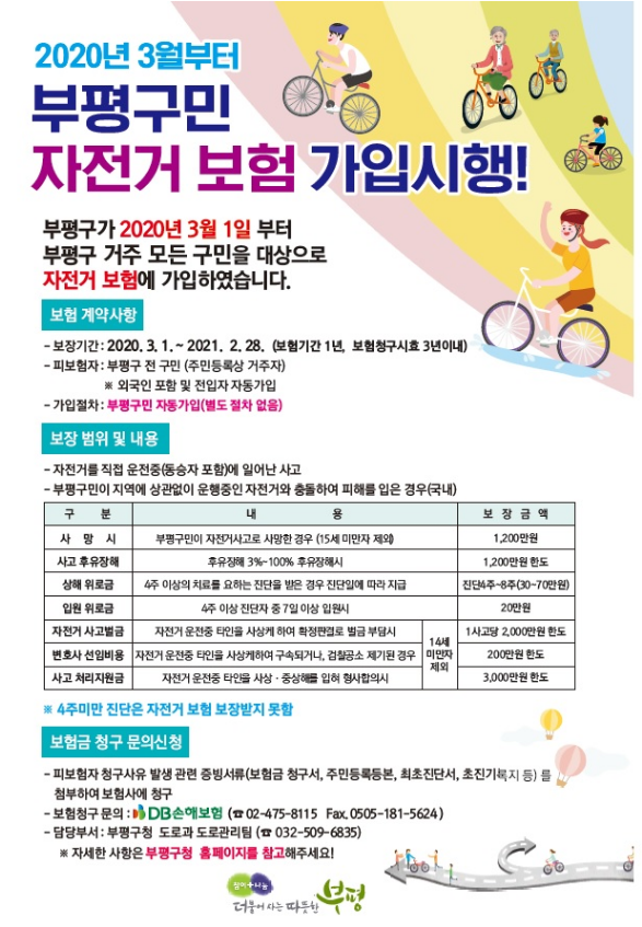 저희 동네의 자전거 보험은 DB손해보험으로 확인이 되는데 이 또한 역시 본인이 직접 신청을 해야 되기 때문에 다른 지역에 계시는 분들도 이런 보험 제도가 있다는 것을 알아두시고 직접 신청해야 된다는 거 참고 하셔서 혹시 사고 시에 유용하게 이용 하셨으면 좋겠습니다.