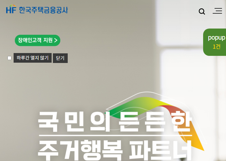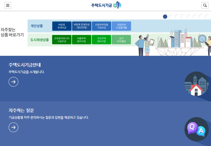 주택청약, 월세 대출, 전세자금 대출, 주택구입 대출 등 주택과 관련된 모든 정보를 알 수 있는 사이트입니다.