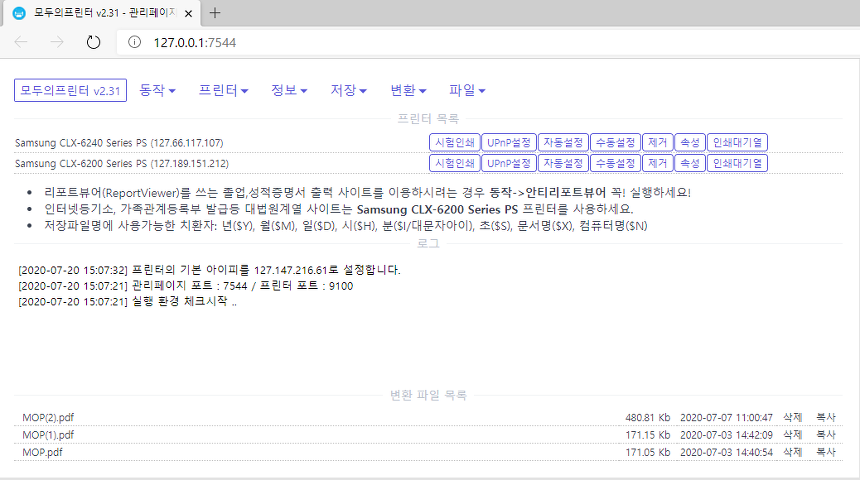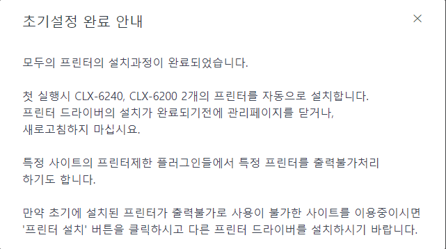 보통 관공서에서 많이 사용하는 CLX-6240과 CLX-6200의 가상프린터를 설치하는데 사업자등록증 또는 가족관계증명서 출력시 이상없이 사용할 수 있으니 다른 옵션 변경 등은 하지 않으셔도 됩니다. 알아서 모두 셋팅까지 완료를 해줍니다.