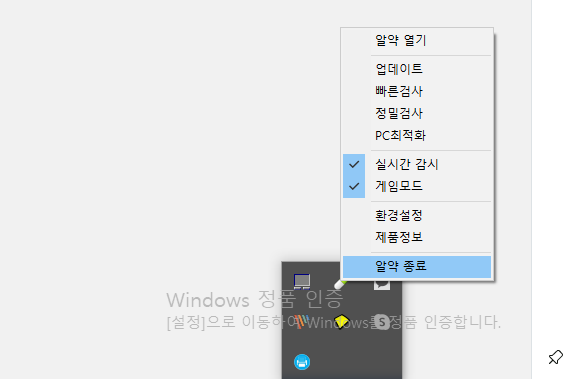저런 메세지가 떴을 때는 우측 하단에서 알약이 실행되고 있는 것을 종료해 준 후 설치를 해주면 됩니다.