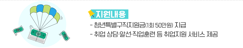 청년특별구직지원금의 경우 지원 대상자에게 1회 50만원을 지급합니다.