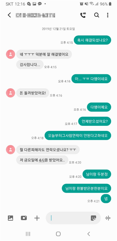 거래를 하며 이미 돈을 입금을 한 뒤 상대방이 사기꾼인 줄 알 게 되었다면 최대한 빨리 연락을 하여 돈을 돌려 받아야 합니다. 보통 전화를 해도 받지 않는 경우가 많기 때문에 문자로라도 연락을 취해야 합니다.