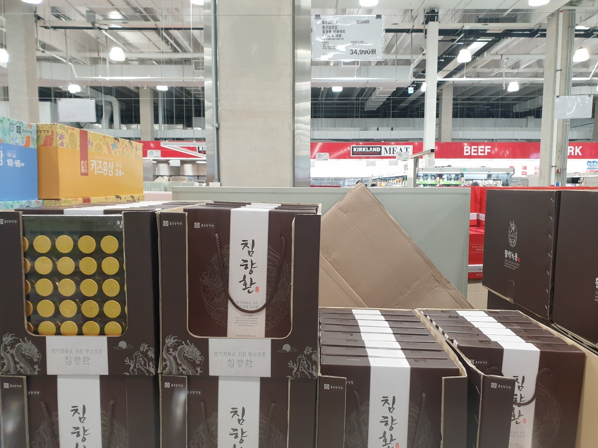 상품이 정말 많더라구요. 건강식품, 화장품, 양주, 선물세트, 냉동식품 등 너무 많더라구요. 특히 코스트코의 대표 상품 미국산 고기의 선물세트가 아직도 눈에 아른 거립니다. 아까 사올껄 그랬나하구요.