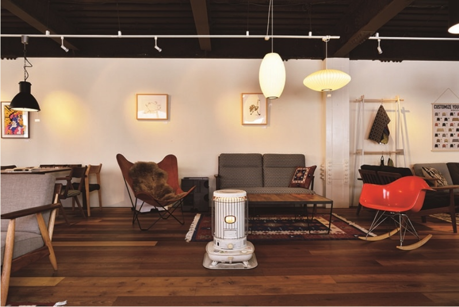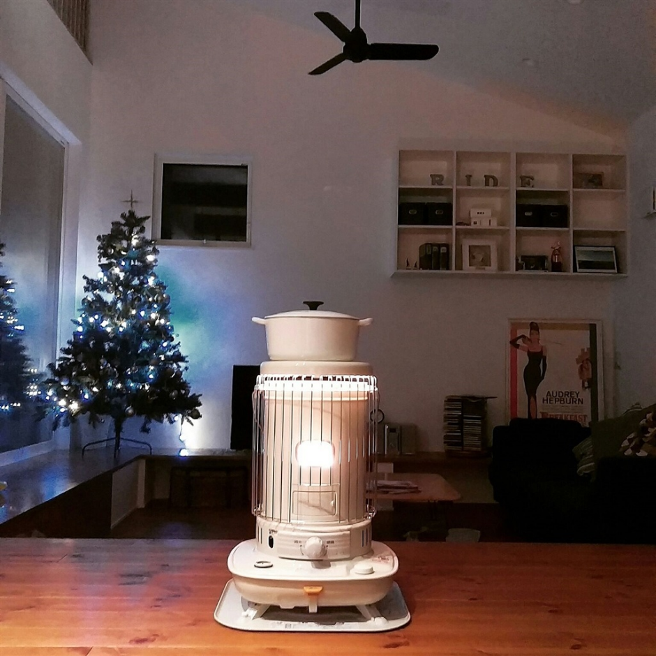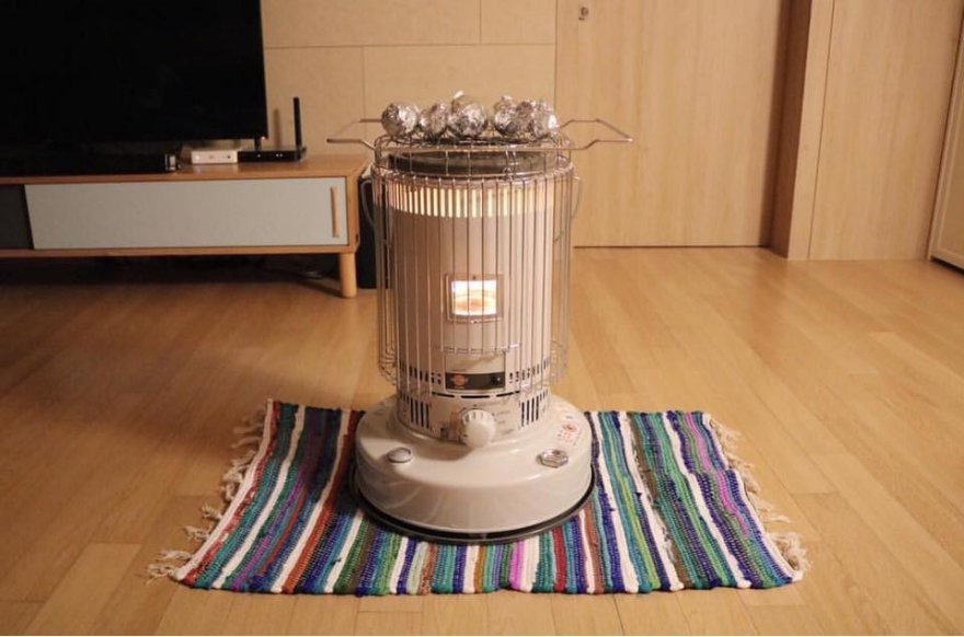 일반적으로 많이 볼수 있는 등유를 사용하는 난로입니다. 전기 없이 사용할 수 있어 오토캠핑장이 아닌 노지에서도 사용할 수 있으나 등유냄새가 나는 것이 단점입니다. 난로 위에 냄비나 주전자를 올려놓아 습도조절도 가능합니다.