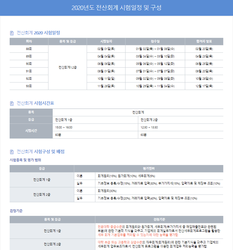 세번째 자격증은 전산회계 2급 자격증입니다. 전산세무회계 자격증 은 세무사에서 대표적인 자격증으로 전산세무회계프로그램을 이용하여 세무회계 실무를 얼마나 수행할 수 있는지 평가하는 자격증입니다.