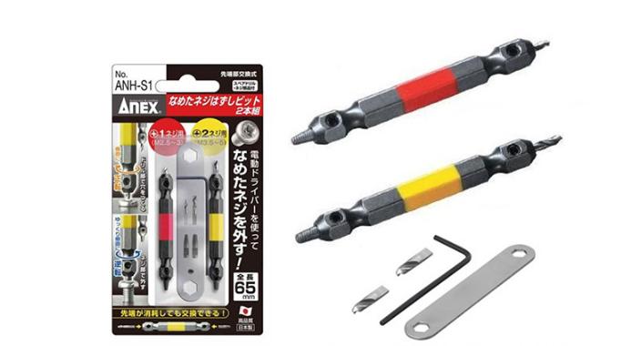 생긴 것은 이렇게 생겼습니다. 드릴 같이 생겼는데 나사선이 반대라 구멍을 내고 돌리면 반대로 돌아가면서 안에 있던 부러진 나사나 볼트가 빠지게 되는 원리입니다.