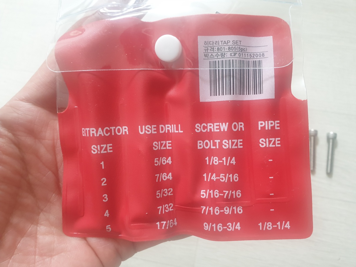 그래서 인터넷에 검색을 해보았더니 볼트나 나사가 끊어지거나 부러졌을 때 반대탭이라는 공구가 있는 것을 알게 되었습니다.