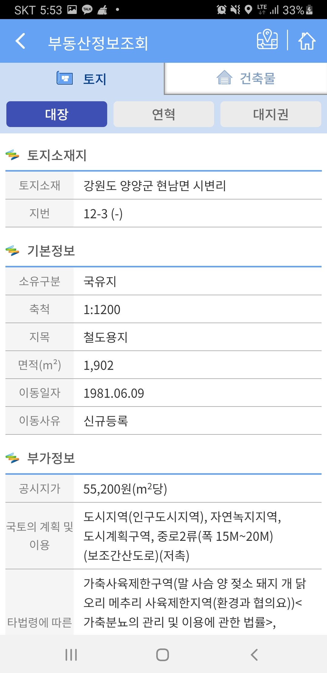 그럼 위와 같이 소유구분에 ‘국유지’라고 나오는 것을 알 수 있습니다.