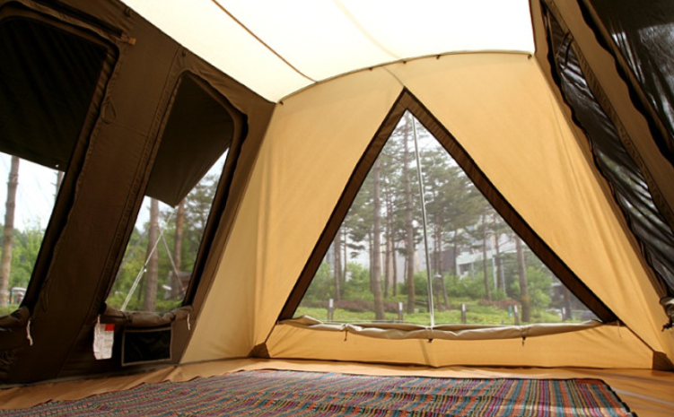 그리고 바람에 강하며 비가 와도 안쪽이 뽀송뽀송합니다. 면텐트를 가지고 우중캠핑을 해보신분들은 면 소재 텐트에 비가 떨어져 내리는 소리가 폴리소재의 텐트와 비교했을 때 매우 환상적인 소리가 납니다.